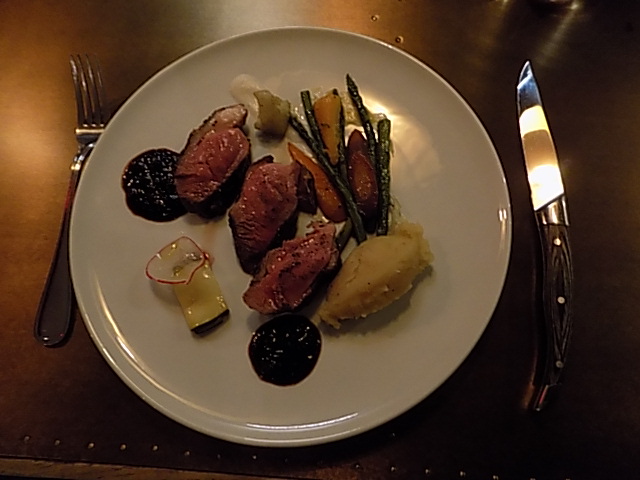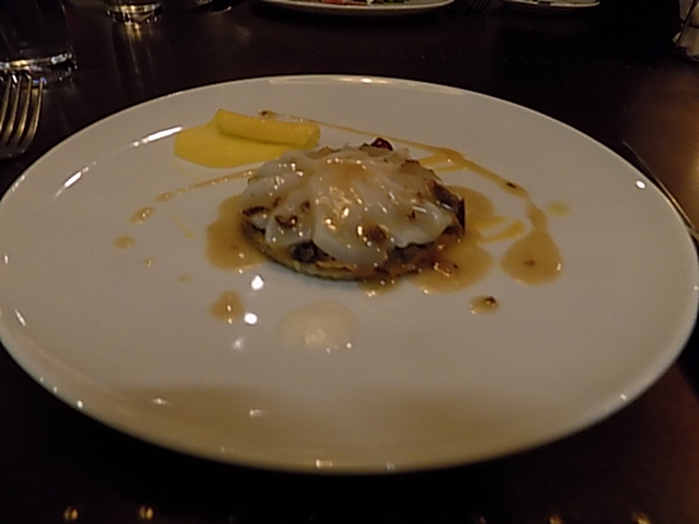 veloutéburgerPour la fin de semaine de l’Action de Grâce, il offrait un menu cinq services débutant par un amuse bouche, un mini burger entre deux galettes, la crème de poivron, les champignons et la moutarde accompagnaient la oeuf mollé aspergesfeuilleté pétonclesviande, suivi d’un velouté de légumes, puis le feuilleté de pétoncles à la crème de gingembre ainsi que l’oeuf mollé monté sur des asperges croquantes saupoudrés de parmesan étaient des choix judicieux parmi les sept préparations, Dans les plats méroucanardprincipaux, une belle variété de protéines : Viande, poisson, fruit de mer et volaille. Le mérou, onctueux à souhait, surmonté d’une piperade de poivrons épicée parfumant le poisson, était un régal pour les papilles, le canard (emblème de la filet mignonfondant et sorbetrégion) à point à l’extérieur, rosé à l’intérieur, assorti d’échalotes et de vinaigre balsamique a trouvé preneur et le filet mignon sauce bordelaise est toujours aussi populaire. Le plateau de fromages du Québec (principalement au lait cru) et les desserts, dont le fondant