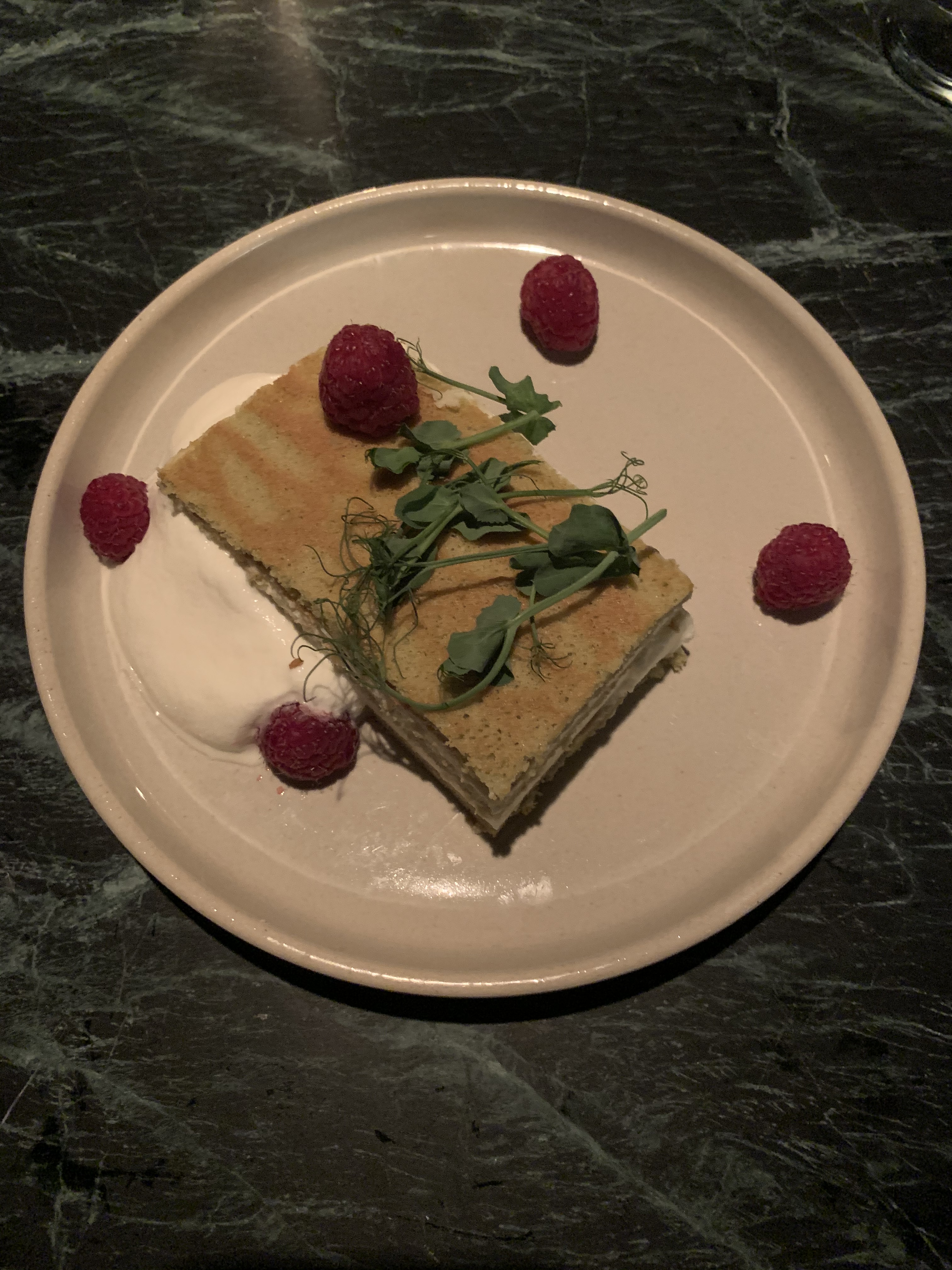 régal. La morue noire caramélisée au four à la sauce miso, fondant à souhait par une cuisson parfaite, donne à ce poisson nordique, un côté exotique. Sa purée de légumes racines, carottes nantaises au charbon est un bon complément. De plus c’est un pur délice pour les papilles. En dessert, une génoise montée sur trois couches, une de macha et pistache, deux de crème, à la fois légère et goûteuse, très peu sucrée est une fin de repas appropriée.