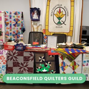 mais aussi des boiseries, des bijoux (argenterie, perles, verre, feuillage pressé), des sacs à main, des tricots, des articles animaliers, des bougies, des vêtements recyclés, des accessoires de voyage et de voiture, des vitraux, des photographies, des articles de décoration, des œuvres d’art textile, des produits de soins pour le corps et le visage, de la papeterie, des peintures, des pièces de la Guilde des Quilteurs de Beaconsfield, des compositions florales et des décors de Noël.