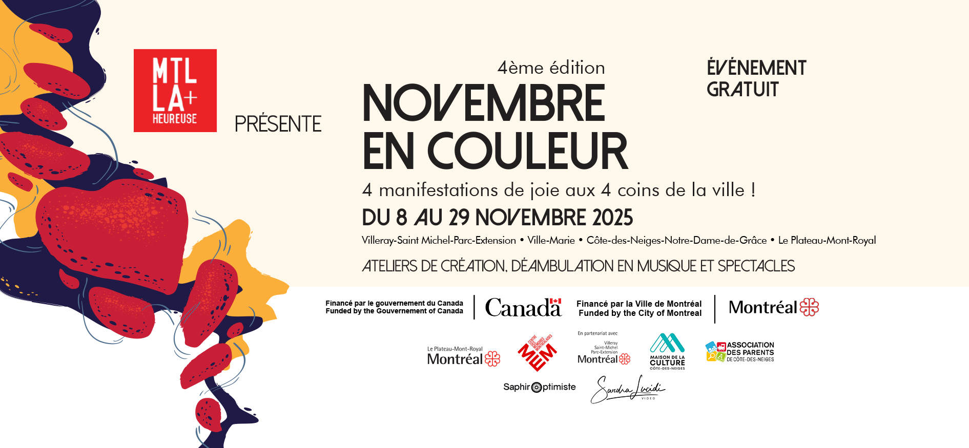 Montréal la plus heureuse a le plaisir d’annoncer le retour du festival Novembre en couleur pour un automne toujours plus coloré !