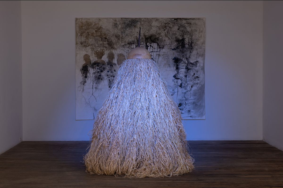 Stanley Wany est représenté par la galerie Ellephant. Inspirée par les Zangbeto, les gardiens nocturnes traditionnels du Vodún chez les peuples ogu du Bénin et du Togo, Pè Béto réimagine leur puissante forme de mascarade. Caché à l’intérieur de la sculpture, un haut-parleur diffuse une musique enregistrée par son grand-père, Albert Gibbs. Sur cet enregistrement, il interprète des pièces à la mandoline dédiées à chacun de ses enfants qui a quitté Haïti au début des années 70. La sculpture devient ainsi un réceptacle de mémoire diasporique, portant des récits de départ, de déracinement et de continuité entre les générations.