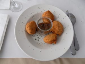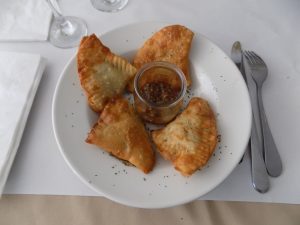 À table, le menu propose un bon choix d’entrées commencez avec les pastels. La pâte est
