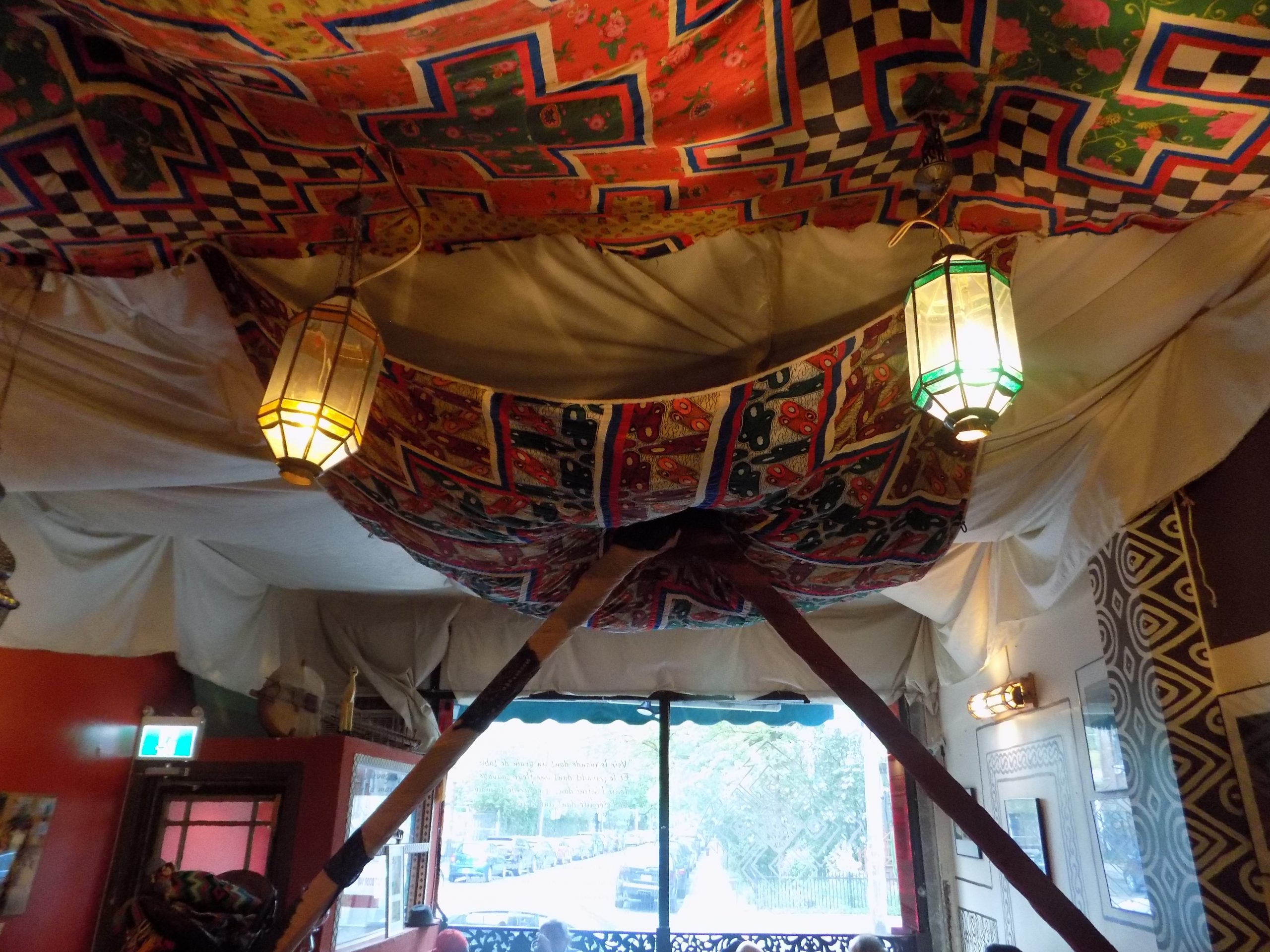 Ce lieu de rencontre, de découverte et de partage se trouve dans le Mile End depuis de nombreuses années. Khaїma (tente nomade) vous fait entrer dans un monde mobile, un voyage à travers les couleurs, les arômes et l’esprit. Une fois à l’intérieur, la musique africaine accompagnée du parfum riche qui émane de la cuisine complètent l’expérience sensorielle qui vous transporte au sein du désert.