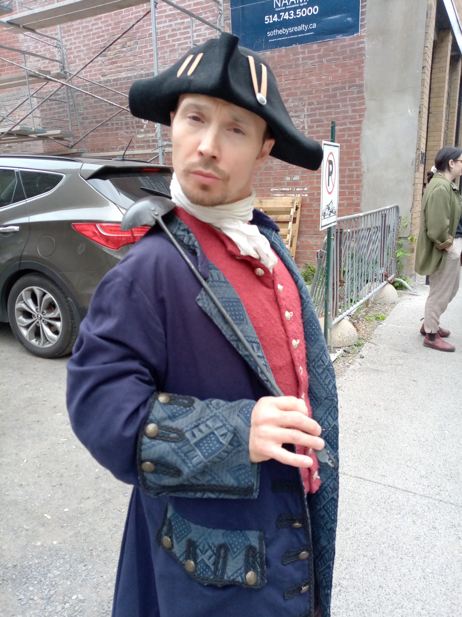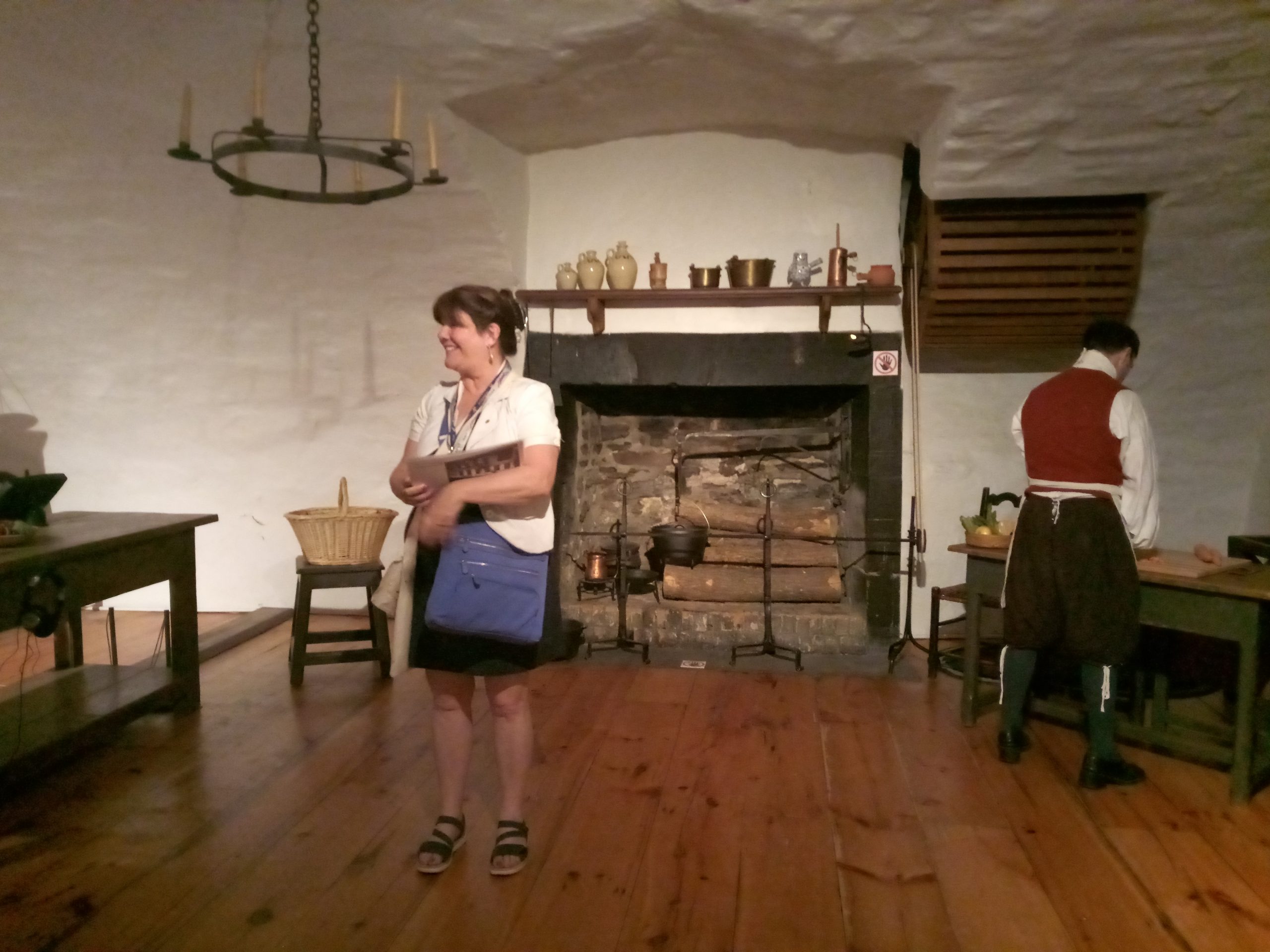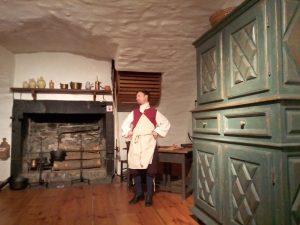 Dans sa cuisine, il interagit avec la guide et discute des plats préparés à l’époque et qui se retrouvaient sur les tables montréalaises. Le pain, la viande en sont les principaux