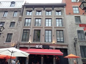 d’alcool. La salle Truteau est l’ancienne imprimerie Beauchemin, où le journal Le Patriote était imprimé et au Velvet, (pièce au bout du tunnel en pierre, éclairée de cierges), il y avait un poste de commerce de fourrures. Rendus au croisement de Saint-Vincent et Saint-Amable (l’ancienne ruelle Viger aboutissant sur le Marché-Neuf) Bevo avec sa cuisine traditionnelle rassasiera votre panse.