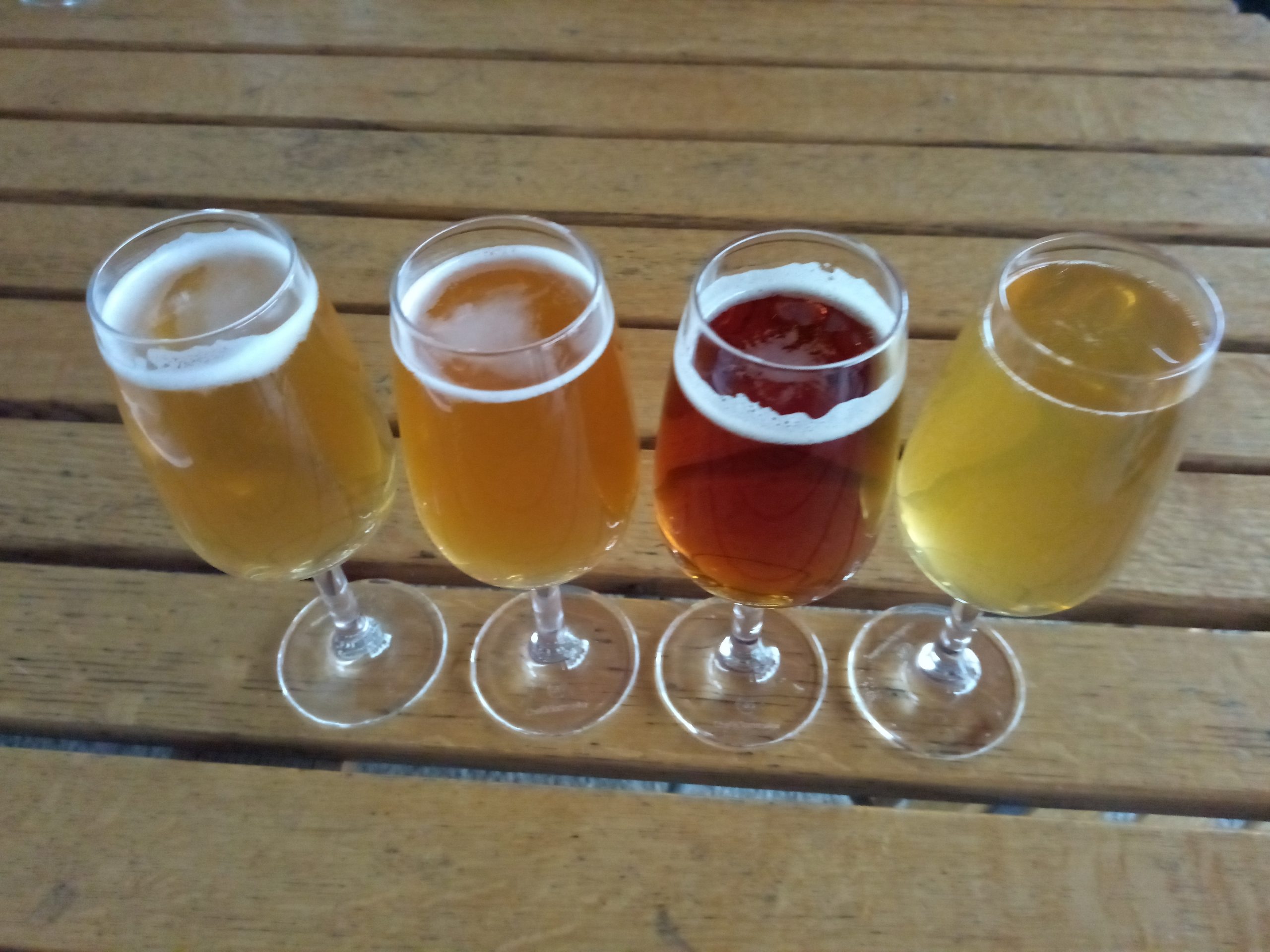 Sur la terrasse, quatre bières (de gauche à droite) de la brasserie Les sœurs grises vous seront proposées :