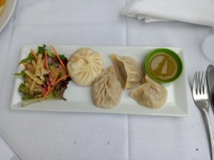 Parmi les entrées de soupes Dall ou au Churu (lentilles ou fromage bleu avec morceaux d’agneau), de Samosa aux pommes de terre, pois et épices, lesTashi Delek Momo aux légumes, poulet et fromage agrémentés de sauce au vinaigre et de menthe peuvent être également servis en plat principal.