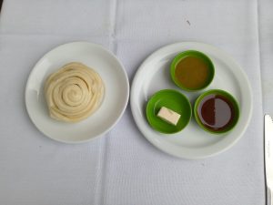 Vous avez l’habitude de consommer du pain avec votre nourriture, le Timo, cuit à la vapeur, se déguste seul, déroulez-le et trempez-le dans une ou plusieurs sauces, vous aurez l’impression de manger un nuage ! Dans les autres variétés se trouvent Le U-Chang Bagleb (pain sucré frit), le Chapati et le Puri (pains de blé).