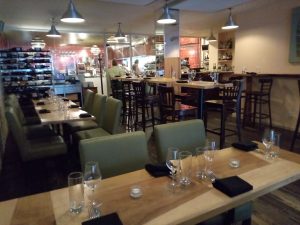 La salle lumineuse est invitante et la cuisine au fond est séparée par une vitre, ce qui permet à la clientèle de voir l’équipe à l’ouvrage !
