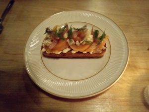basilic, se dégustent lentement pour apprécier toute la fraîcheur et l’onctuosité du mets. Un assortiment gagnant qui emplira vos papilles. Quant à l’Omble chevalier, élevé en recirculation intensive en milieu urbain dans le quartier Ahuntsic de Montréal par Opercule pisciculture, appelé truite arc en ciel à l’état sauvage, il est servi sur un biscuit, nappé de crème et garni de chou-fleur. Succulent !