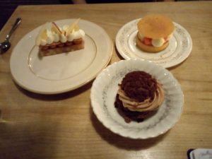 frais et gaufrette. Le mille feuilles (pâte phyllo au miel), pommes en gelée dans son confit, au milieu, une ganache praliné-sésame également nappée d’une chantilly surmontée de pommes fraîches. Le troisième, un chou au chocolat, compote de camerises, nougat glacé noisette, chantilly amaretto et crème de cacao. L’odeur alléchante de cet assortiment vous offrira un avant-goût de ce qui vous attend en bouche. Les garnitures vous séduiront et vous serez comblés par ces compositions culinaires.