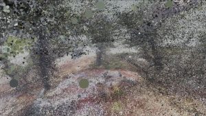 L’exposition explore aussi le monde actuel à travers un passage vers le numérique où la nature devient malléable et immatérielle. Ainsi, elle évoque des univers distants et impalpables qui deviennent à portée de main où la destruction humaine n’a plus cours, où les gestes des terriens deviennent constructifs.
