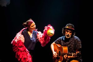 Appelle-moi Dame Oiseau est un conte musical touchant, accessible et ludique porté par l’artiste Jacinthe Lavoie. À dos d’oiseau ou de chameau, à bord d’un grand bateau ou d’un traîneau, Petite Souris vous guidera dans son univers à la fois vaste et minuscule. Crédit photo : Natercia