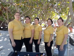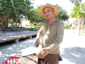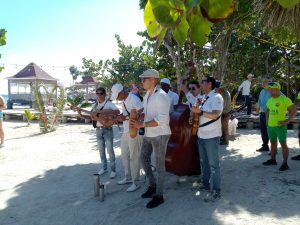 salades, légumes grillés, soupe de poulet, saucisses, chips de bananes et de patates, le tout arrosé d’alcool, de jus, d’eau pétillante ou d’eau de noix de coco, tranchées sur place. Pour agrémenter votre moment, des musiciens et danseurs vous accompagneront sur des rythmes cubains.