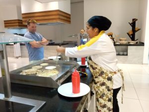 Le matin, la cafétéria Sélection vous reçoit avec crêpes, smoothies à la papaye, banane et/ou tamarin (fruit local), viennoiseries, jus de pêche, café ou thé, salades, légumes et protéines (œuf, viande). Le soir, crustacés, fruits