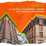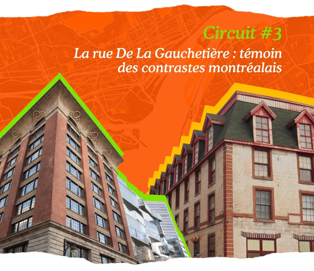Circuit 3. Née au dix-huitième siècle, la rue De La Gauchetière est l’un des premiers passages de la ville reliant les faubourgs d’est en ouest. Aujourd’hui parallèle à l’autoroute, cet axe est un témoin de la densification de Montréal. Du CHUM en passant par le quartier chinois, jusqu’à la côte du Beaver Hall, cette voie emblématique reflète les défis d’intégration contemporaine à la trame ancienne du centre-ville.